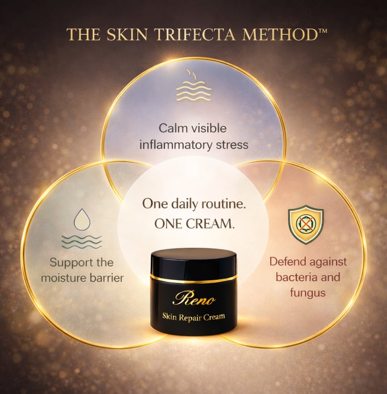 Reno Cream is not about hype or cosmetic tricks. It is about creating the conditions the skin needs to recover, and then applying that consistently long enough for the skin to respond. You are not being asked to believe anything blindly. You are being invited to try the Skin Trifecta Method™ for yourself and judge the outcome based on what you can feel and see.